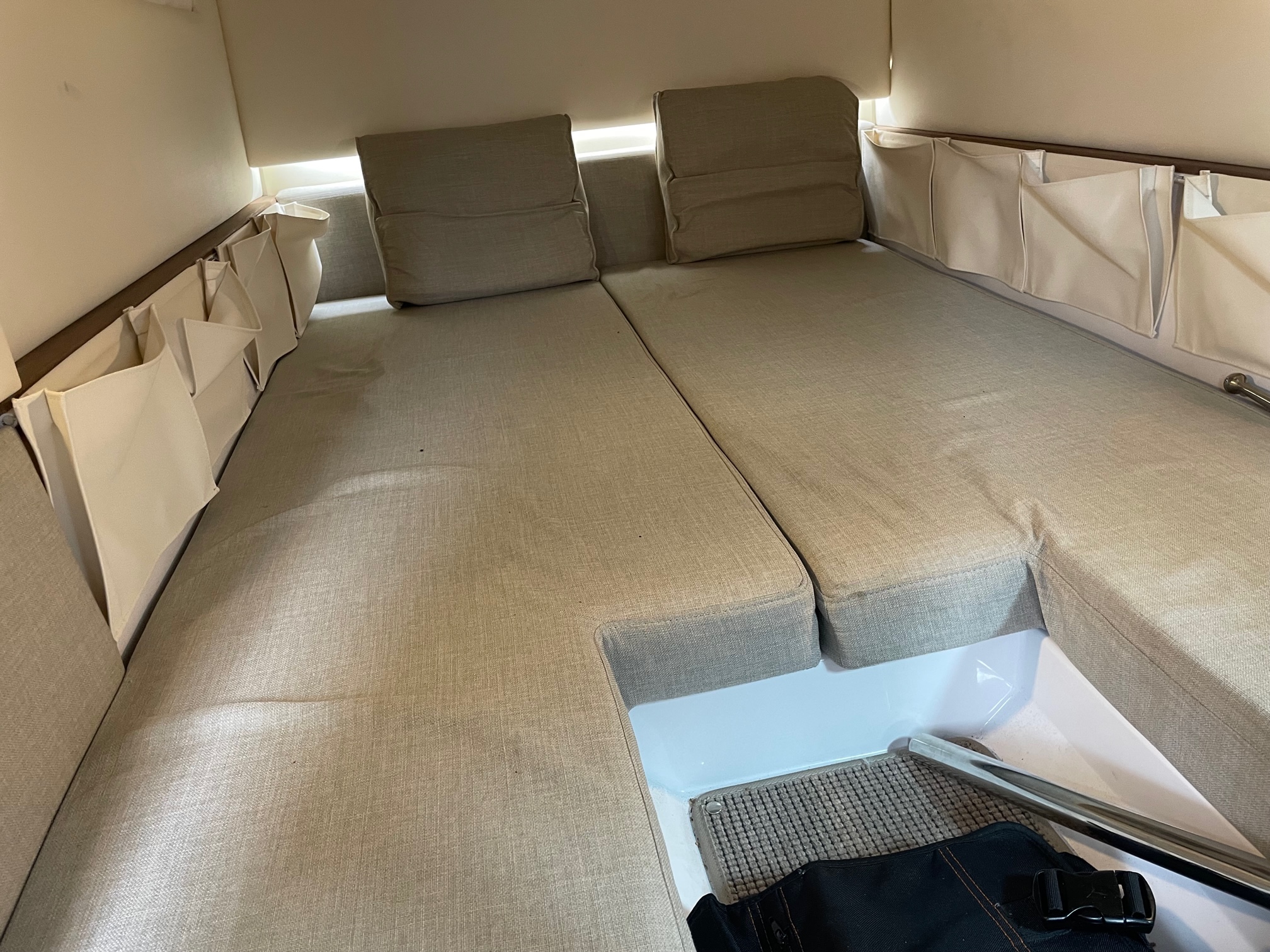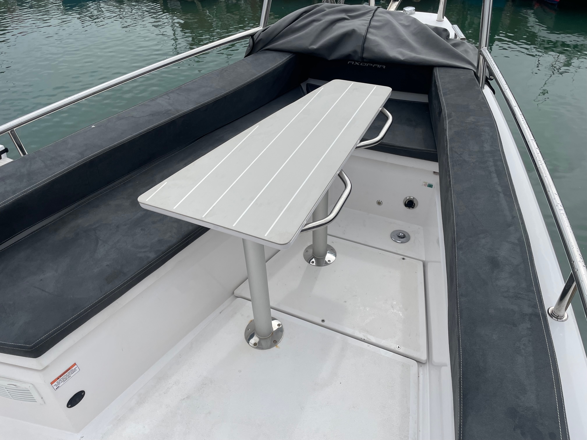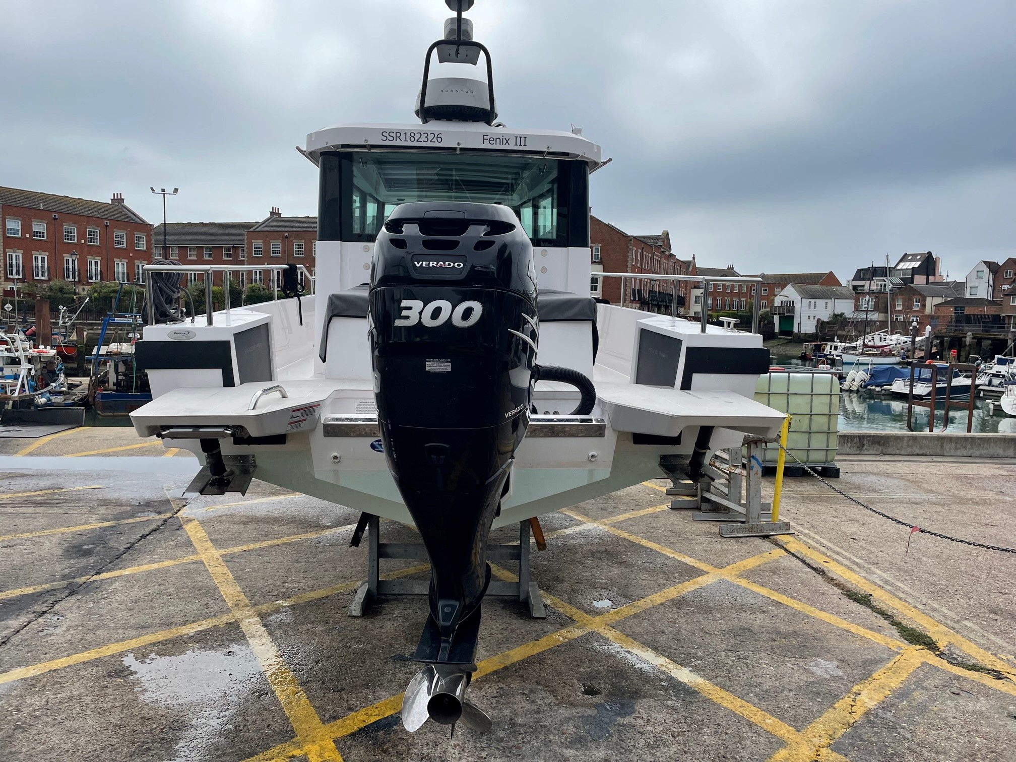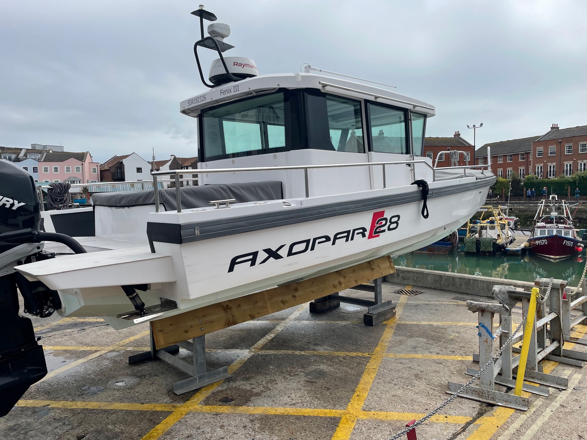 Axopar 28 Cabin for sale. Very well maintained example of the cabin version of these very popular boats. Commissioned in 2017 and powered by a Mercury Verado 300hp 4-stroke outboard with electronic throttle. Documented service history - last serviced October 2025 and showing only 360hrs from new. This high spec example comes with fly-by-wire controls, hydraulic trim tabs, bow thruster, upgraded Raymarine radar/plotter/AIS system, Raymarine depth rereader, Raymarine DSC VHF radio, Sony audio system and exterior search light. The comfortable wheelhouse is trimmed in grey upholstery with contrasting teak panelling and will covert to a small double berth and with the twin berth aft cabin and seawater heads, these boats are very popular weekenders. For more infortmation or to arrange a viewing call 023 9283 3166 or email.