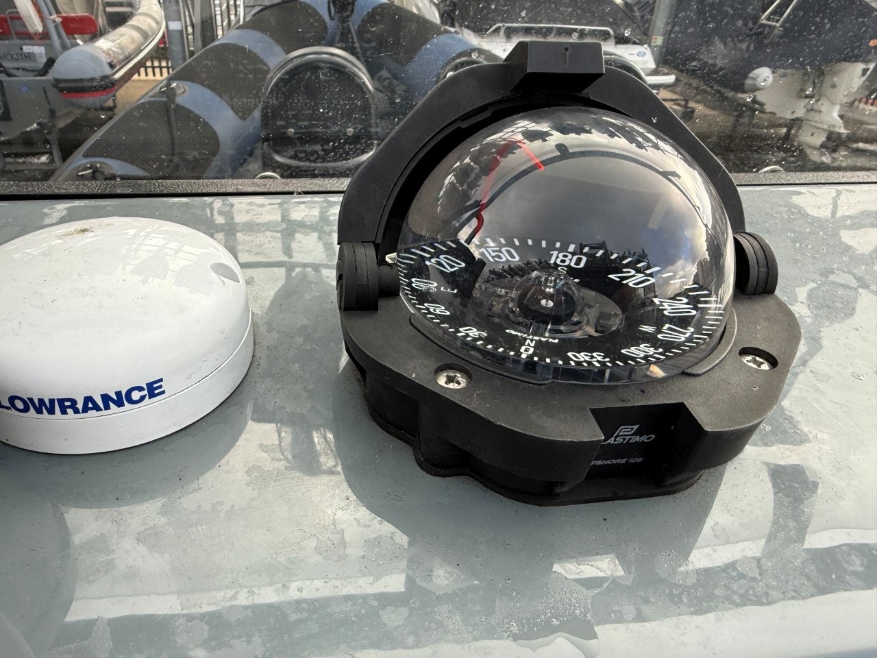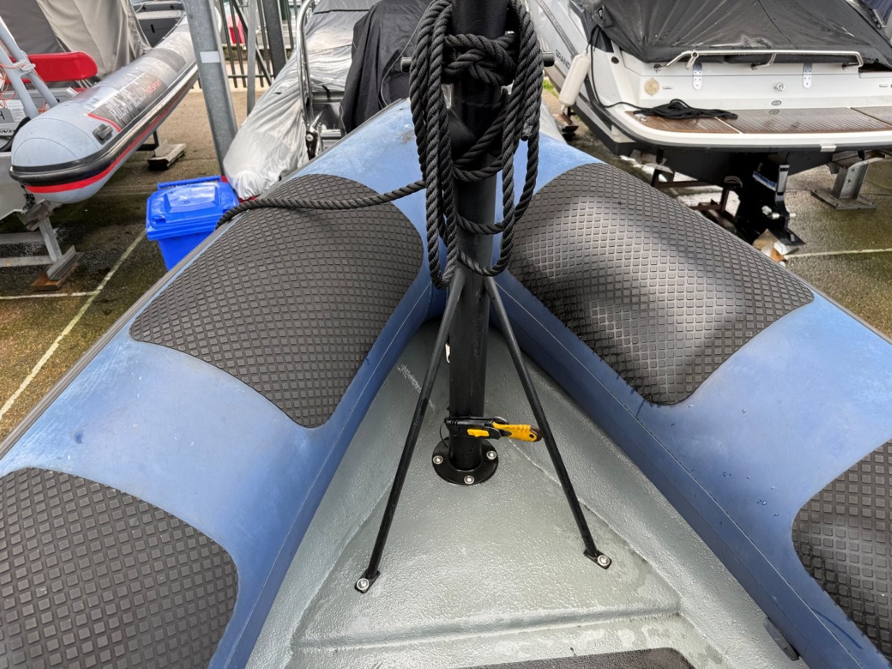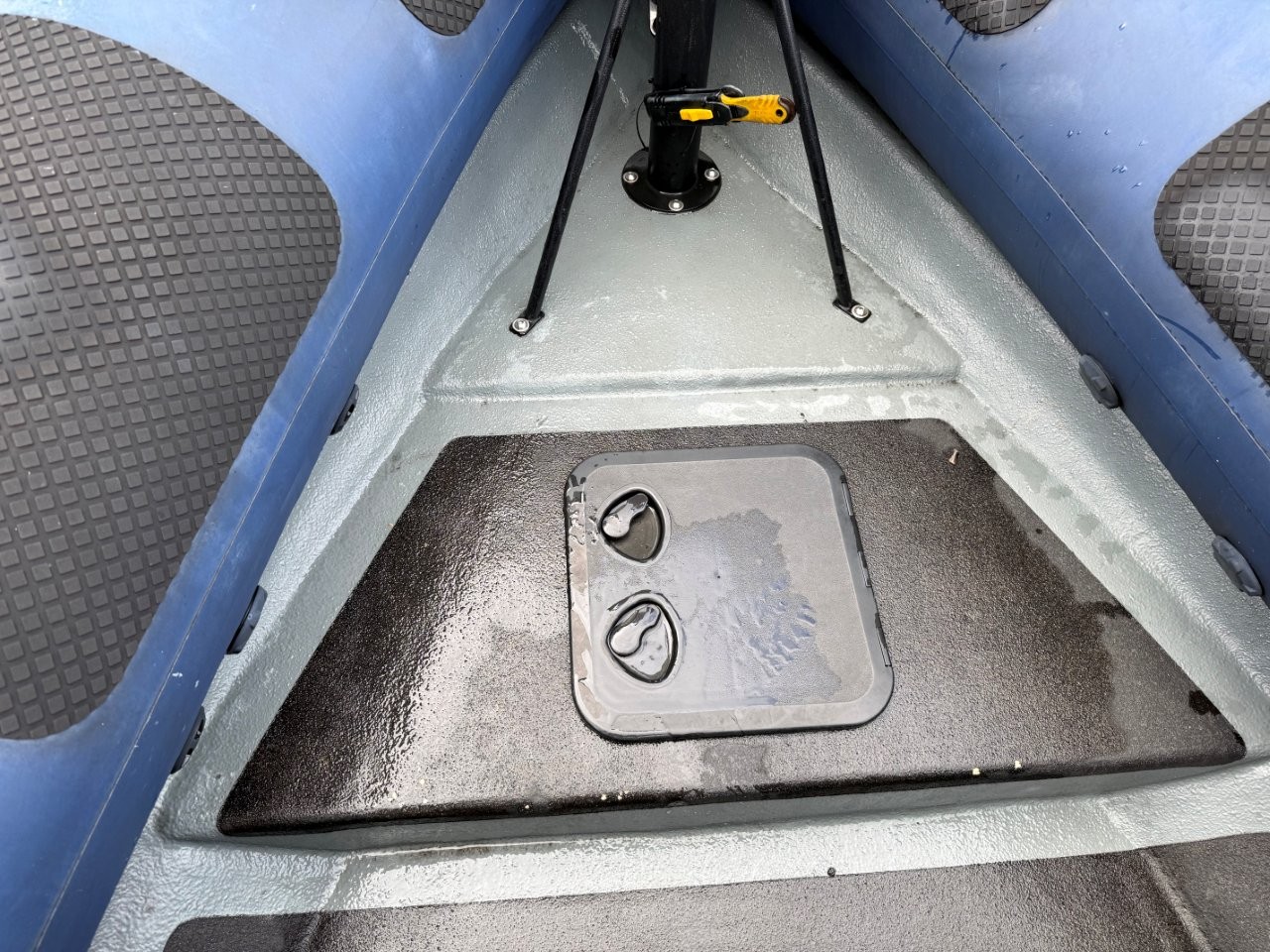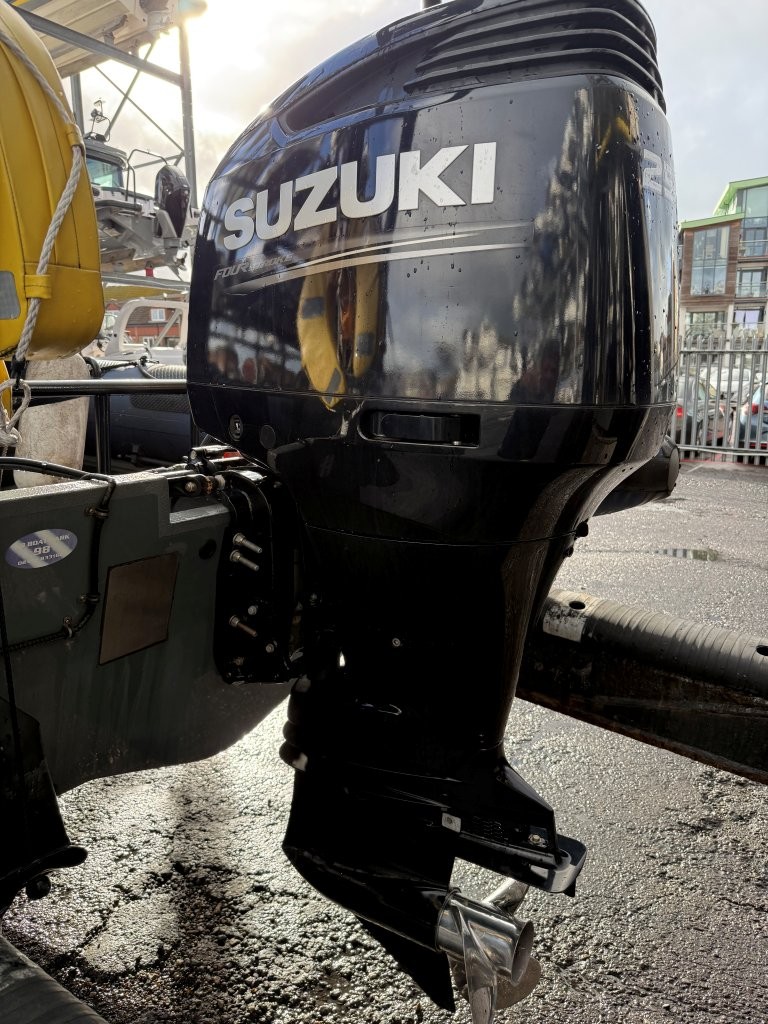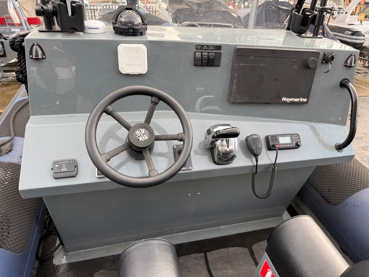 Ribcraft 9m rib for sale. A rare opportunity to acquire a commercial specification dive support/commercial marine support rib from this highly regarded manufacturer of heavy-duty all-weather boats. Built for an international dive equipment supplier in 2018 it comes highly equipped and with very little use. Powered by a Suzuki 250hp four stroke with only 200 hours use and a full service history. It comes fitted with electronic throttle, push button start, hydraulic steering and automatic bilge pump. Seating comprises two long double jockey seats in the bow with a custom-made liferaft cage behind, wing-backed helm and navigator seats and a further two twin jockey seats to the rear with a bottle rack behind. The commercial grade “A” frame is fitted with a hinged diver recovery ladder, dive flag post, navigation lights and spot lamps. The extra wide console gives extra foul-weather protection and is fitted with Icom M333 VHF, Raymarine Hybridtouch Axiom plotter/sounder with engine management combo screens, gas detector and deck compass. Extras include console and seat covers and an all-over winter cover. The boat is not currently coded but would require little to get certificated. This a rare opportunity to purchase a relatively little used commercial rib at a substantial saving on the new price. Vat is included and a Vat invoice will be provided. Please note that there is no trailer with this boat. For further information or to arrange a viewing here at KB Drystack in Old Portsmouth, call 023 9283 3166 or email.